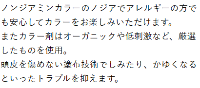 お客さまの中で「ジアミンは髪に良くない、ノンジアミンは髪にやさしい」という認識が高まっているかと思います。
