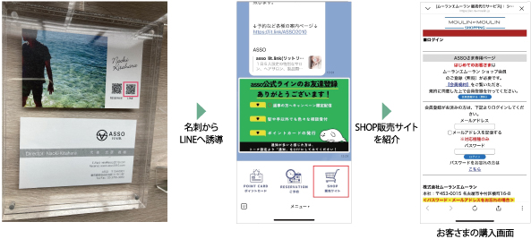 まず、お店のLINEアカウントを登録いただいて、そのアカウント内で販売代行サービスに直接アクセスできるようにリンク設定をしています。