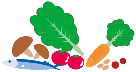 緑黄色野菜・大豆類・きのこ類・海藻類・ゴマ・青魚・梅干しなど