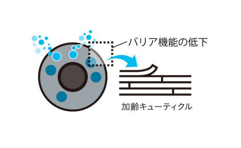 ダメージを受けた加齢キューティクルは、日々のシャンプーによってヘアカラーの染料やうるおい成分が流出し、色ツヤの持ちが悪くなります。