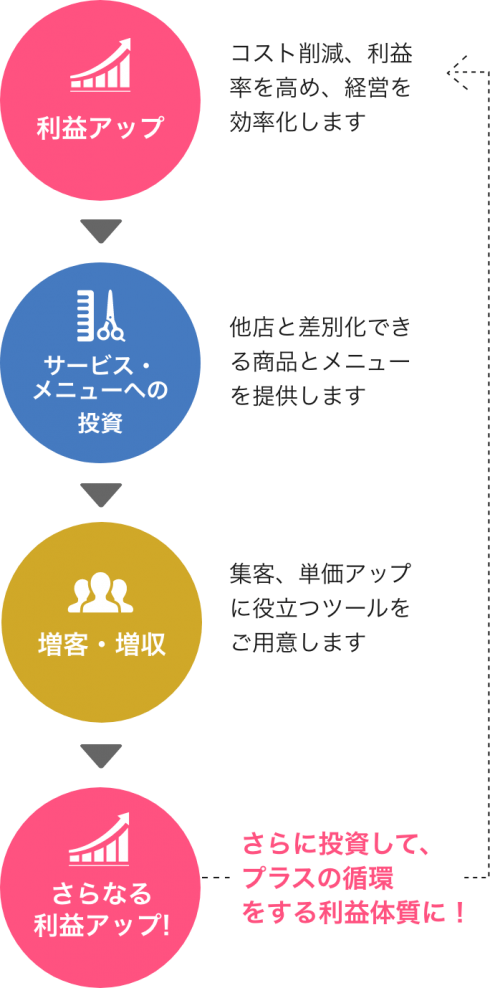 サロンさまの利益に繋がる高品質な店販商品を適正な価格でお届け。直販によってインターネットによる販売を防止します。