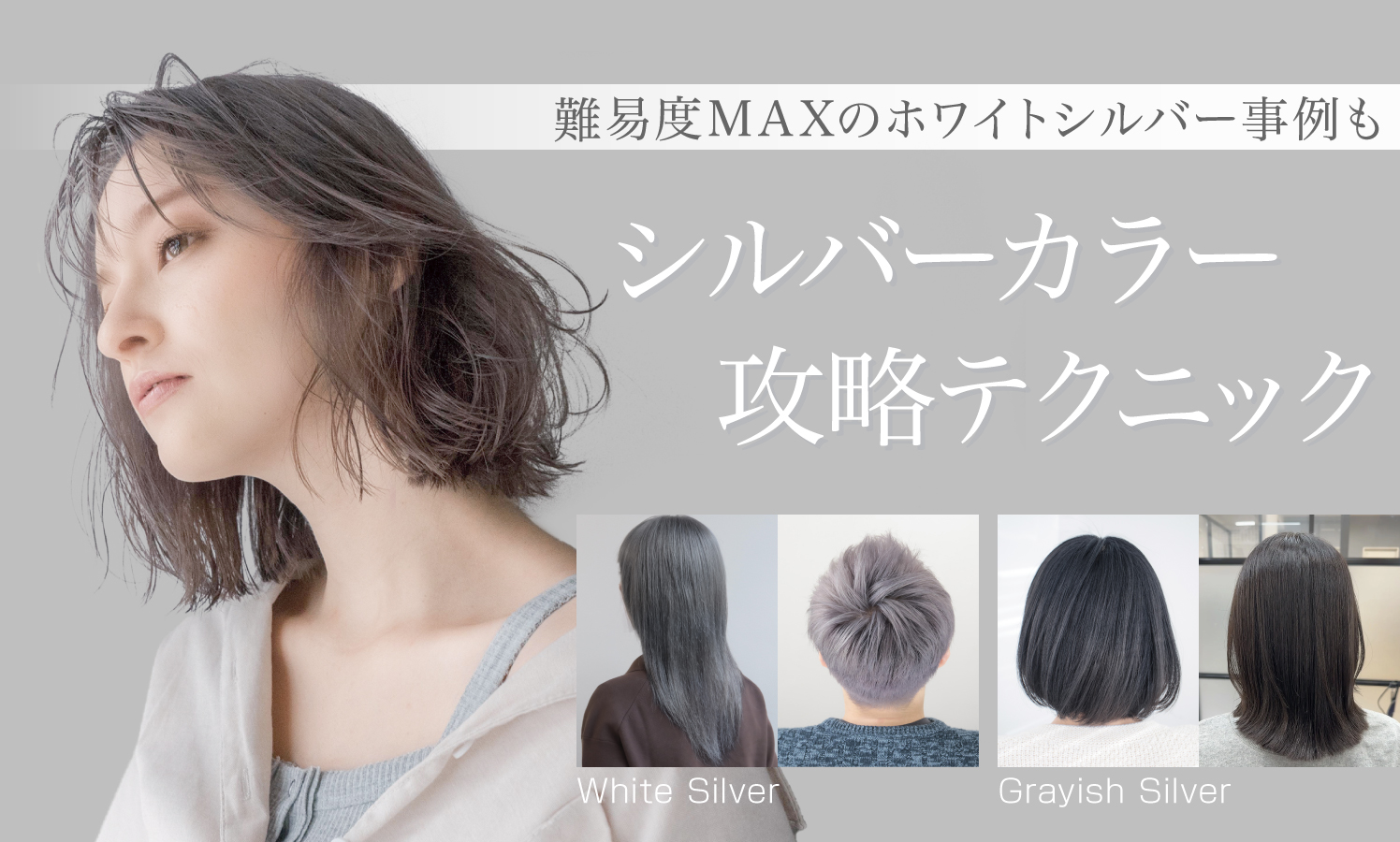 日本人特有の赤味の強い黒髪を無彩色なシルバーに仕上げるのはとても難しく、事前の準備や仕上がりの範囲の理解が必要です。