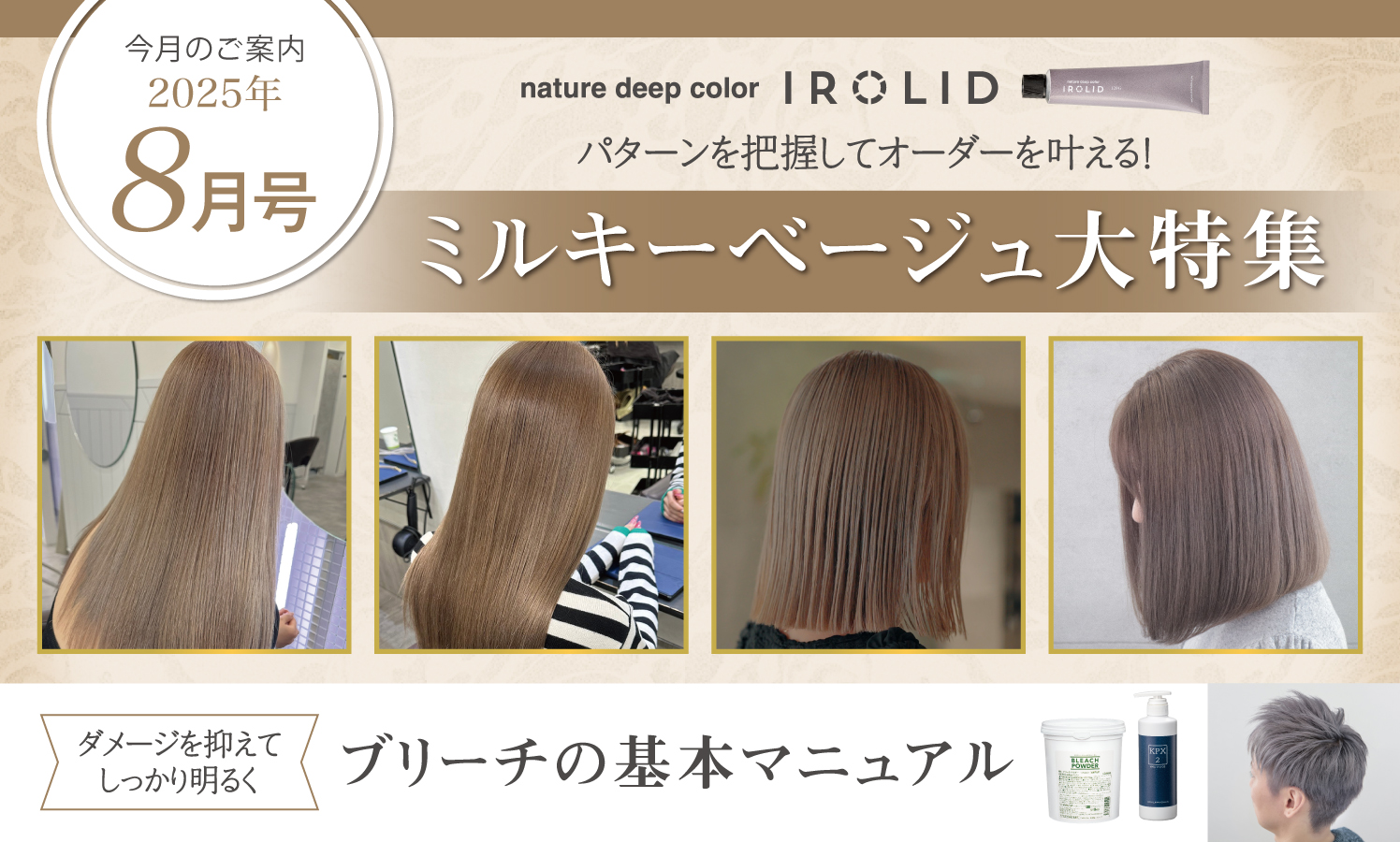 【今月のご案内8月号】ミルキーベージュ大特集&ブリーチの基本マニュアル