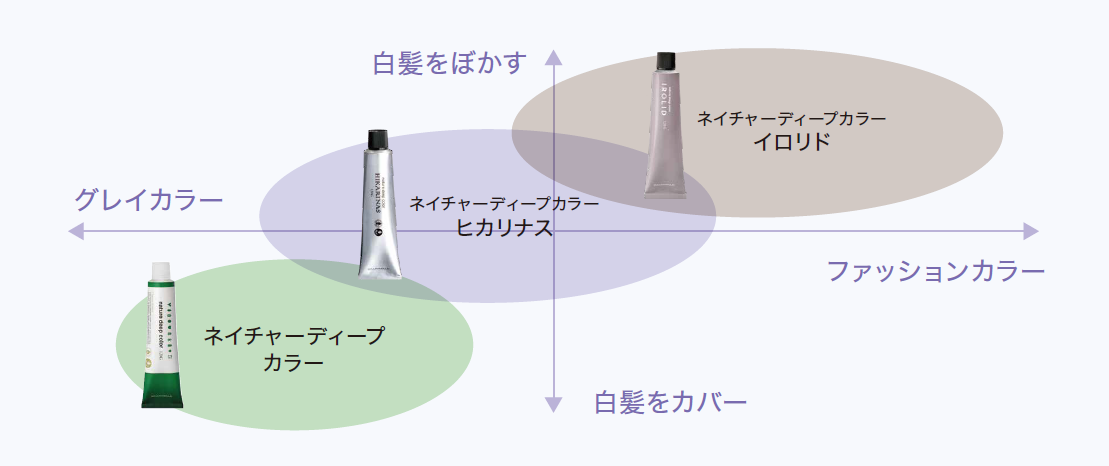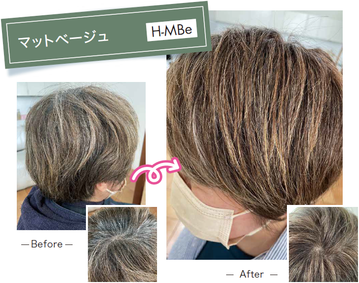 ファッションカラーに近い透明感や色味を楽しめながら、白髪のなじみも良いのが特長です。