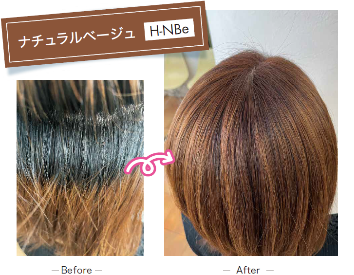 ベージュベースの染料に潜ませたラベンダーのトーンアップ効果で新生部と既染部がキレイにつながる。