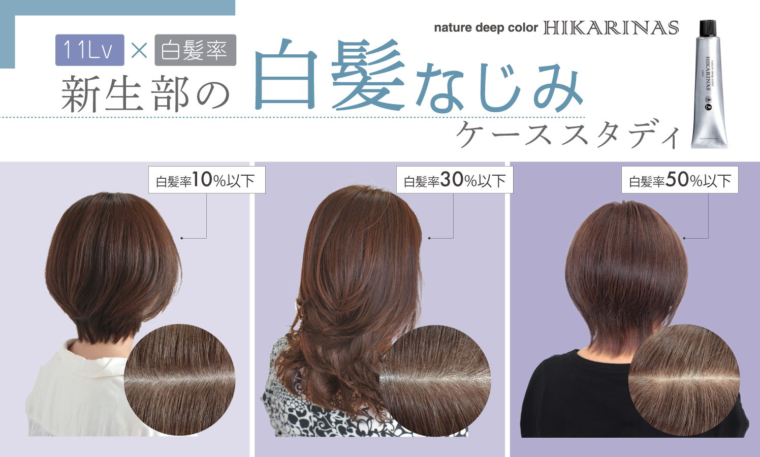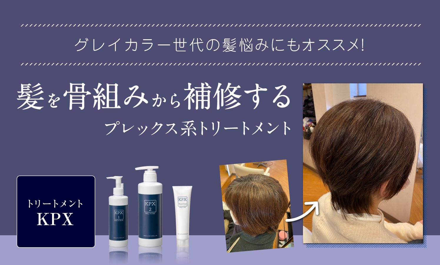 ショートヘアにすると「頭が大きく見える」と感じたことはありませんか?今回は、ムーランエムーランのライブ配信サービス「SHARE ROOM」にも講師として出演されているお二人がコラボ!SUPER CUTの松田 隼人さんが骨格を意識したカットを、笹川 照樹さんは白髪をおしゃれに楽しむカラー術を実践解説!使用するのはムーランエムーランの話題の白髪染め「ヒカリナス」。透明感のある仕上がりと、ショートでもバランスよく見せる秘訣を、リアルな施術を通してわかりやすくお届けします。 この記事のまとめ 本日の見どころ 美容師さんプロフィール モデルさんBefore ヒカリナスでつくる、軽やかショート×白髪カバーの塗布テク 丸み×くびれで作る立体ショート!骨格カットのポイント スタイリング&仕上げ 最後に この記事は、ビューティーターミナルの許可を得て転載されたものです。原文はこちらです。 本日の見どころ 四方田(ビューティーターミナル) 本日は、ムーランエムーランのライブ配信サービス「SHARE ROOM」にも講師として出演されている、笹川 照樹さんとSUPER CUTの松田 隼人さんがついにコラボ! 「骨格を考えたカットとカラー」について解説していただきます! 笹川さん 今日使用するのは、ムーランエムーランの「ヒカリナス」という白髪染めの薬剤なんですけど、実はおしゃれ染めとしても使えるんです。 だから白髪染めっぽい仕上がりではなく、ポジティブに楽しめるカラーにしていこうと思います。 松田さん 今日は初めてカットさせてもらうモデルさんなんですけど、髪の状態を見て「あ、ここ大事だな」ってポイントがあったので、その辺りを解説しながらやっていきますね。よろしくお願いします。 [nlink url="https://www.m-moulin.co.jp/member/lineup/color/combi-color/ndhn/"] ▲上に戻る 美容師さんプロフィール 笹川 照樹さん(@teruki_sasakawa0306) 「ブリーチをしないで作るワンメイクのカラー」を得意とし、Instagramで多くの女性から支持される。ブランディングを確立させ 、アシスタントなしマンツーマン接客で最高売上として技術売上460万、店販170万、トータルで総売630万の実績を持つ。現在はカラーレシピの発信も積極的に行っている。 松田 隼人さん(@supercut_matsuda.h) SUPER CUT 富雄 サロンワークを中心に活動し、2021年より全国の美容師向け講習会を本格始動。オンラインサロンでの技術講師も務め、Instagramでは「浪速のベーシック野郎」として親しまれている。2024年はセミナー104回を開催し、自身主催のオンラインサロン「NBA online」は開設3週間で予定100名を突破、現在会員数は1000名超え。Instagramフォロワーは5.2万人。2025年より光シザーコミュニケーターに就任し、美容界での影響力を拡大中。 各分野に特化した美容師によるライブ配信を中心としたオンラインサロン。サービスはLINEから利用でき、月4回配信、アーカイブ見放題。 [nlink url="https://www.m-moulin.co.jp/member/feature/31315/"] ▲上に戻る モデルさんBefore 〈モデルさんの髪の状態〉 ・明るめだが、赤みはそこまで強くはない ・ベージュっぽい感じに色落ちしている ・白髪が全体的に混じっていて、分け目付近の白髪が気になる ・髪型はウルフっぽいレイヤースタイル ・段差も入っていて、量もしっかり削がれている ▲上に戻る ヒカリナスでつくる、軽やかショート×白髪カバーの塗布テク 笹川さん 今回は後ほどショートスタイルにしていくんですが、形がきれいでも暗すぎると重たく見えてしまうんですよね。 そこで、ヒカリナスのH-SmBe(スモーキーベージュ)を使って、少しくすみのあるベージュ系で全体を染めていきます。 今日は、アシスタントの方にも任せやすいような塗り方をご紹介します! 〈ベース塗りのレシピ〉 H-SmBe9(スモーキーベージュ) OX 2% 今回のカラーの塗布ポイントとしては、全頭を H-SmBe9(スモーキーベージュ)OX 2%で塗布し、ベースとして施術しています。 OX 2%を使用する理由としては、エイジング毛に対して6%を最初からのせて長時間置くと、仕上がりの質感が硬くなり、将来的に毛先がパサつきやすくなる可能性があるんですね。 なので、根元の6%は最初から使わず、後半で追い塗りするようにしています。 このやり方だと、ストレートの履歴があったり履歴が複雑でも、毛先の状態に合わせて、薬剤の濃度や塗布タイミングを調整することができます。 そして髪の体力を見ながら、攻められるところには時間差で薬を追加していくイメージですね。 〈10分後の追い塗りのレシピ〉 根元全体 H-SmBe9(スモーキーベージュ) OX6% 分け目の白髪が多い箇所 H-SmBe7(スモーキーベージュ)OX6% 笹川さん これから H-SmBe9(スモーキーベージュ)OX6%を根元の黒い部分に塗布します。 OX6%を使用し、根元と毛先の明るさの差を自然につなげていくことが狙いです。 また、分け目やつむじ周りなど白髪がある部分には、H-SmBe7(スモーキーベージュ)を使用して白髪もカバーできるように塗布しています。 根元部分を塗ったあと、10分放置します。 10分後 笹川さん この辺は根