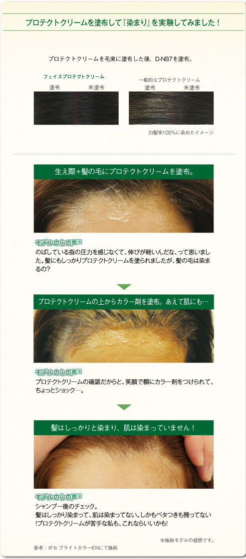 髪にクリームがついても、ヘアカラーを上から塗布して染めることができ、ムラになりません。