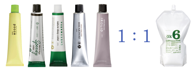 ムーランエムーランのすべてのカラー1剤と2剤は 1:1 で使用