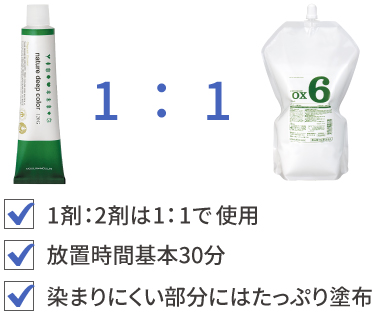 -明るさがほしい場合や白髪の浮きが気になる場合は4%や6%を使用します