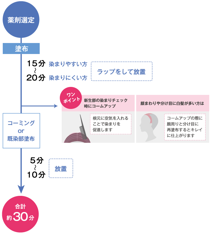 -新生部がある程度染まってから(放置15~20分を目安)塗布します。暗くならないように放置時間を調整します。
