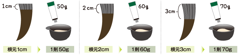 - 新生部の白髪をしっかり染めるため、2剤は6%をご使用ください。