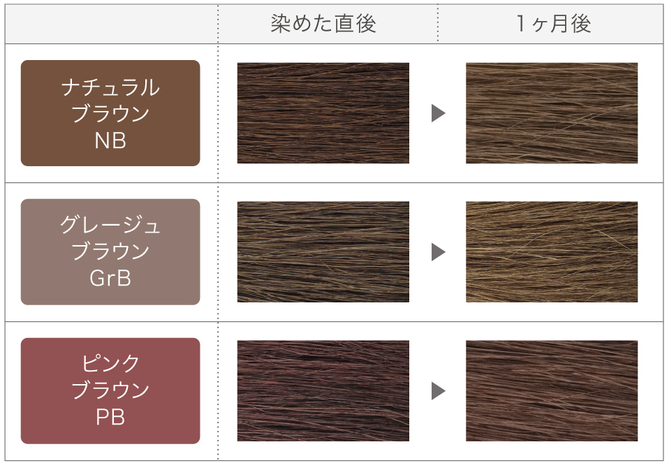 - どの色味も褪色後の赤味は極端に出てきませんが、気になる場合はGrBかPBをオススメします。