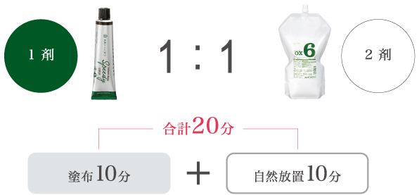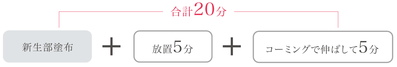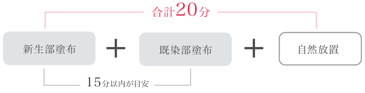 - 塗布~放置で合計20分です。塗布時間が10分以下の場合、放置時間を調整してください。