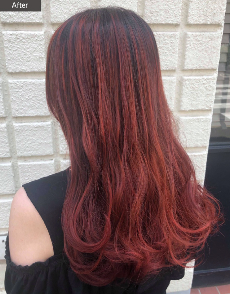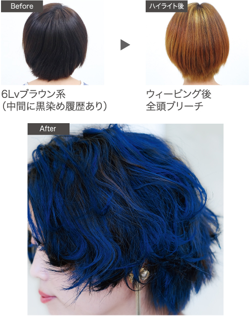 オレンジ系の調色にClearを混ぜてブリーチ部分の明るさを出し、ナチュラルな印象に。