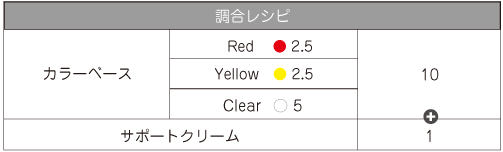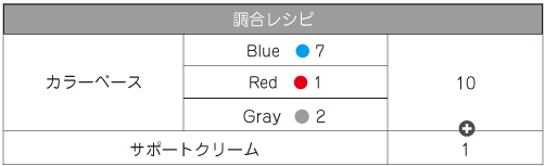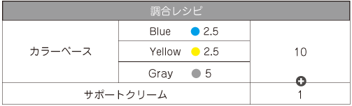 ベースの黄味を抑えるブルーバイオレット。Grayをミックスすることで明度と彩度をおさえて深みをプラス。