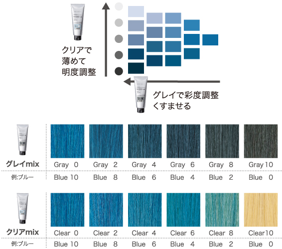ビビッドな色味で髪を染めることができる塩基性・HC染料を使用したカラートリートメント。NODIA(ノジア)はサポートクリームを混ぜて使用するので、一般的なカラートリートメントよりも良く染まり、色味も定着しやすく、長持ちします。