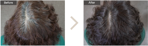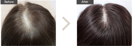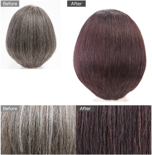 白髪の染まりは弱まりますので、既染部のみやお客さまのご要望にあわせてお使いください。