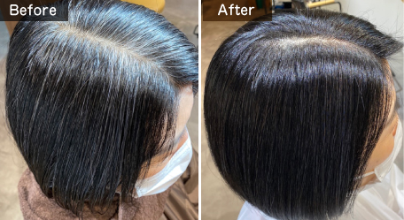 白髪率30% (フロント部40%)  新生部2㎝、事前状態全体9~10Lv