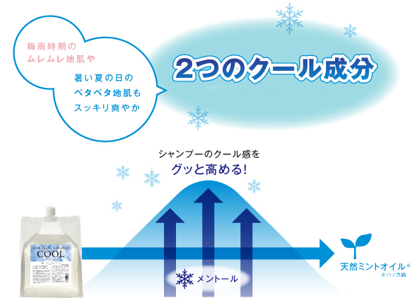 2つのクール成分※でシャンプー後までつづく清涼感。ツンとこないグリーンアップルの香り。