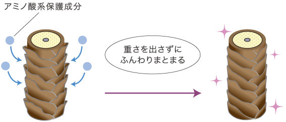 アミノ酸系保護成分※3でキューティクルをしっかりとコート。ボリュームを潰さずにふんわりとまとまる髪に。