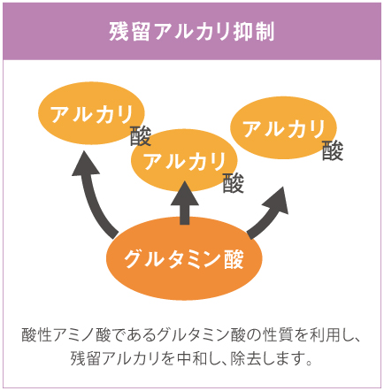 カラー毛に不足している酸性アミノ酸“グルタミン酸”を採用。グルタミン酸で髪を補修しながらpHで残留アルカリを中和します。