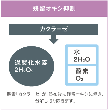 過酸化水素分解酵素「カタラーゼ」を配合し、残留オキシを洗い流し、除去します。