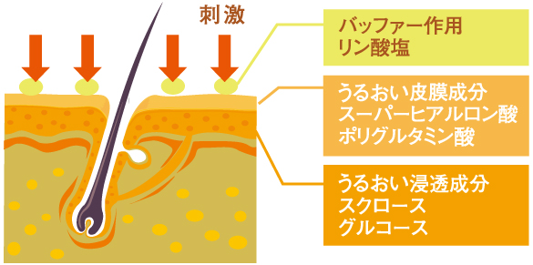 バッファー機能を持ったリン酸塩が働き、薬剤の刺激から頭皮を保護します。