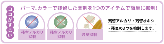 施術後の快適性を高めるため「残留アルカリ」「残留オキシ」「残臭」に総合的にアプローチ