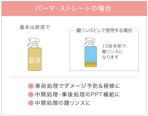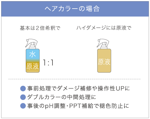 セ・トゥ プラスサン α は簡単に1本で、事前処理や中間水洗での毛髪補修にオールマイティに使えます。