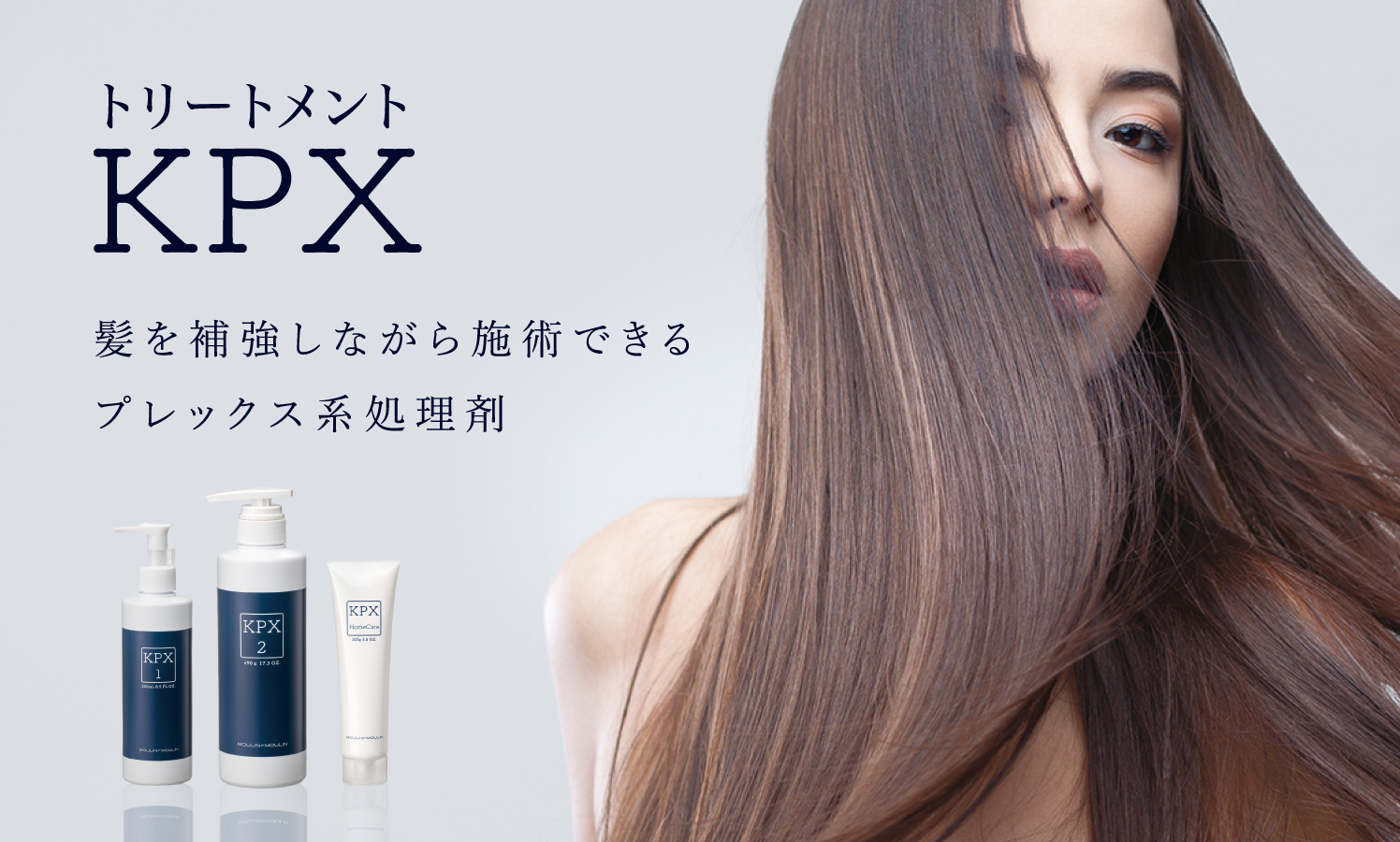 事前処理や中間水洗で使用するKPX1と、仕上げのトリートメントとして使えるKPX2の2つのアイテムで強くしなやかな髪に整えます。