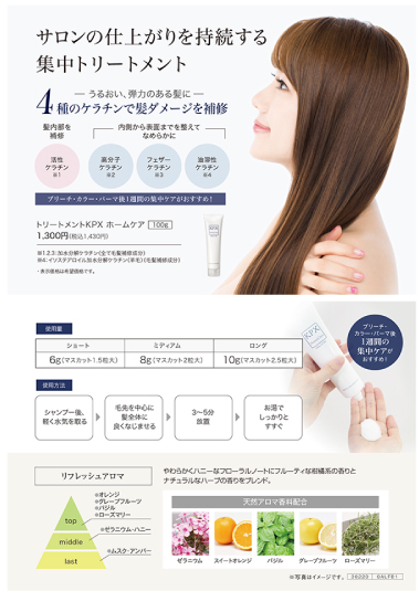 ※ブリーチのみにお使いただく場合、ブリーチ前の処理剤としてKPX1を使用し、KPX2は必ずしもお使いただく必要はありません。ハリ・コシを重視した仕上がりをご希望の場合に、仕上げのトリートメントに代えてご利用ください。