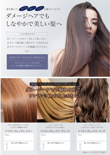 ダメージヘアでお悩みの方への、ブリーチ・カラー・パーマメニューが実現します。