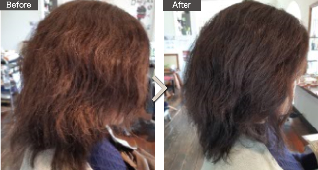 ※リノヴィールは乾燥やダメージによって空洞化した髪内部を充実させることでツヤ・おさまりの良い髪に整えますが、SS結合を切らないと伸びないクセや縮毛を伸ばすことはできません。(リノヴィールには還元剤は入っておりません)