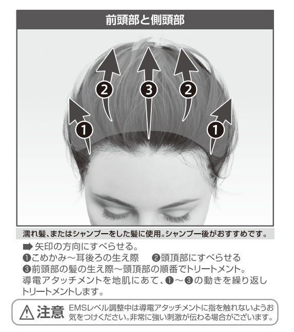※初めてご使用する際は、必ず回転・EMSレベルはレベル1から使用し、身体に慣らしてからレベルを調整してください。
