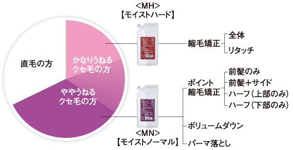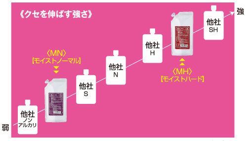 ハードとノーマルの強さを幅広く設定することで、シンプルなアイテムで幅広い髪質対応を可能にしました。