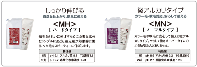 縮毛をきれいに伸ばすために必要な成分をシンプルに処方。そのため配合されている還元剤の力が有効に発揮され、強さを計算しやすく、軟化ムラが少なくなり安心です。また、カラー等によるダメージに対してできるだけダメージを抑えながら軟化できるように保護成分として、大豆PPT(加水分解大豆蛋白)を配合しています。