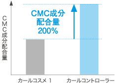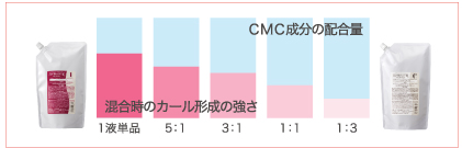 さらにカールコントローラーを混ぜることで、1液のカール形成力を弱めると同時に、カールコスメ1の2倍配合されているCMC成分でトリートメント性を高めます。