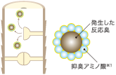 抑臭アミノ酸が反応臭に結合し、臭わない成分に変化させます。