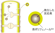 茶ポリフェノールが揮発する反応臭を包み込み、ニオイを抑え込みます。
