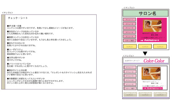 あなたのサロンはイメージに合った色使いをしているんでしょうか?頑張り過ぎて沢山の色を使い過ぎていませんか?大事なコンテンツがちゃんと目立っていますか?イメージに合った色使いをすることは、お客さまにあなたのサロンをわかりやすく理解していただく事につながるのです。