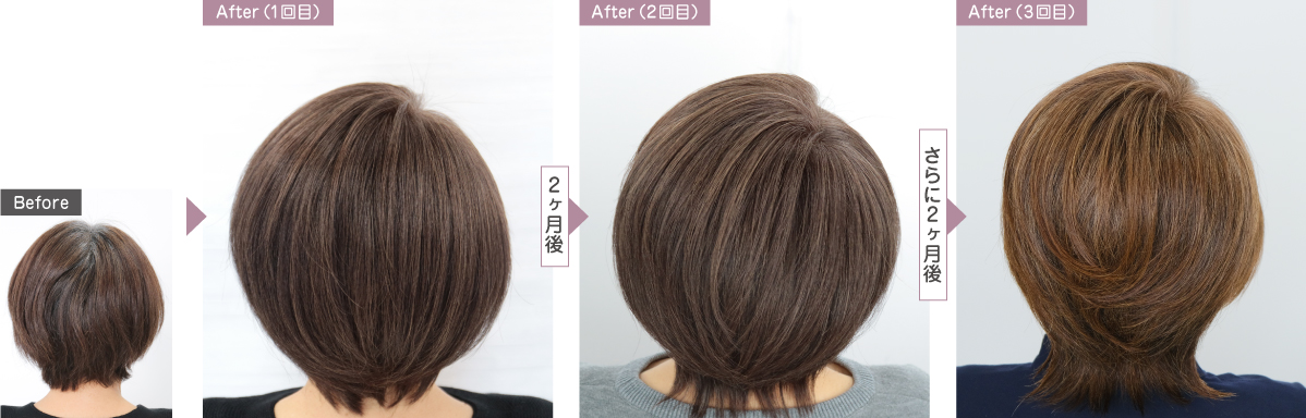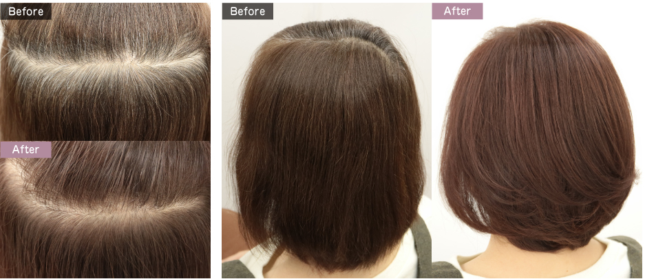 Before:新生部:白髪率5%、2cm 既染部:9~10Lv