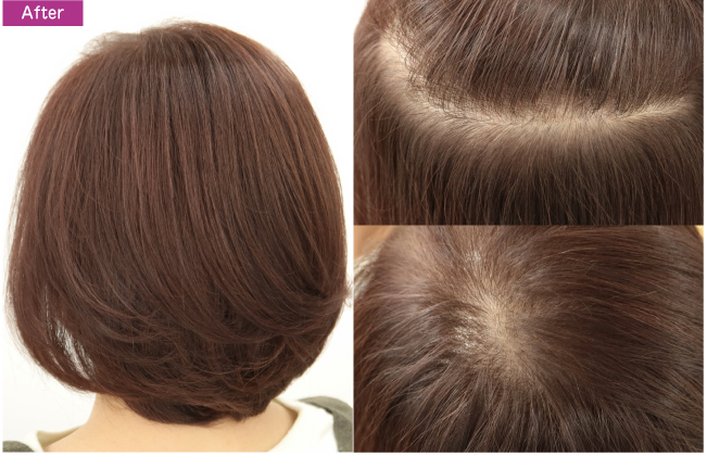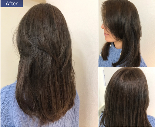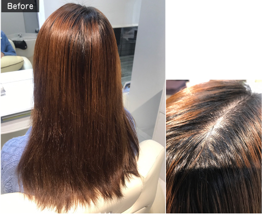 既染部の明るさをキープするかトーンダウンさせるかは、新生部を染める色味と既染部の状態に併せ調整します。