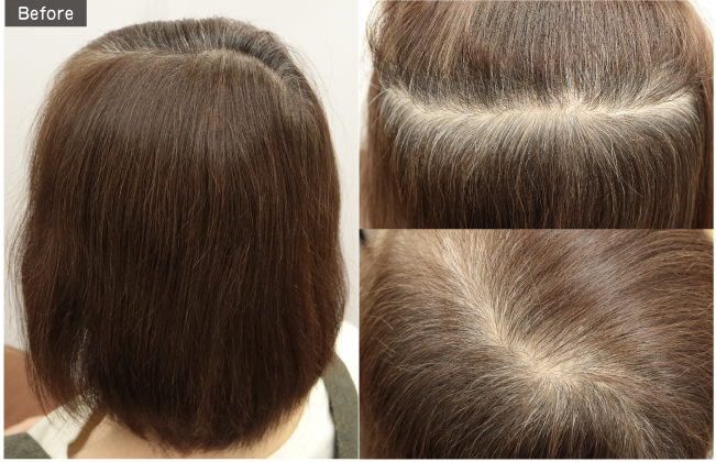 新生部は白髪をカバーできる色味で染めます。既染部に使用したい色味に合わせて選択すると、つながりが自然になります。