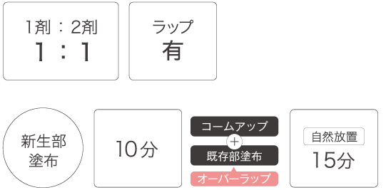 新生部と既染部のつながりを良くするために、境目は1cm程度オーバーラップさせて塗布することがポイントです。