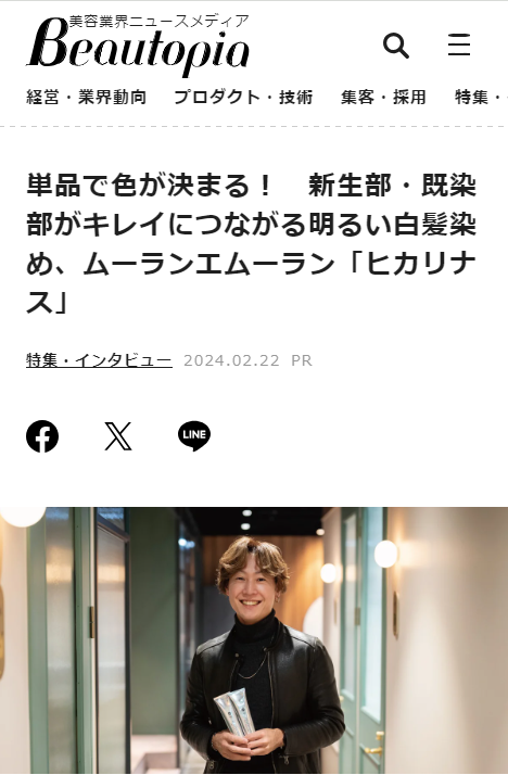 【Beautopia】単品で色が決まる!新生部・既染部がキレイにつながる明るい白髪染め、ムーランエムーラン「ヒカリナス」