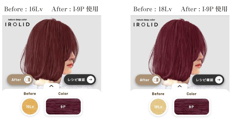 I-13P : I-9P : トリートメントティントRed=1 : 1 : 1(2剤 4%)