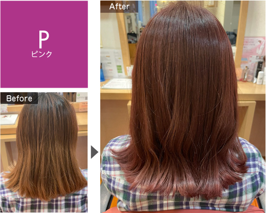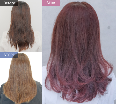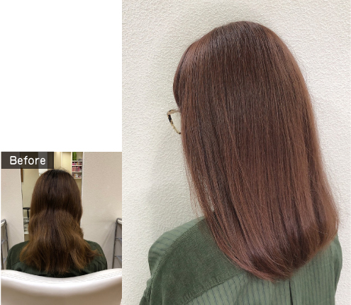 ②ビフォー10~12Lv事例:褪色の黄味をしっかり抑えて深みのあるピンクカラーに