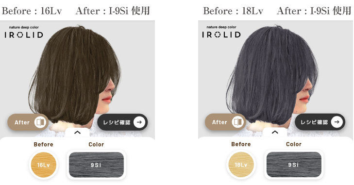 <Before:16Lv・18Lvのイロリド9Lvシルバー使用の色味の目安>