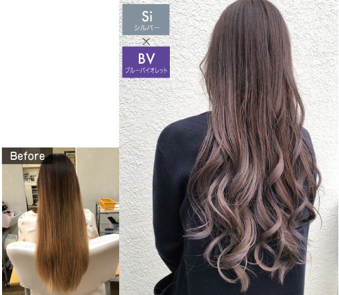 Color I-5Si:I-5BV:トリートメントティントBlue=4:1:1 (2剤4%)