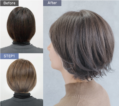 シンプルなレシピで、根元から毛先まで均一な色味に